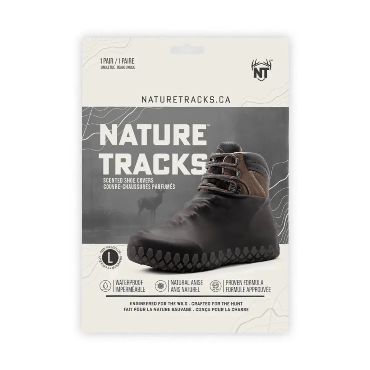 Nature Tracks Scented Shoe Covers are designed for hunters who demand durable performance and effective scent control. Our patent pending & registered manufacturing process, made from impregnated premium silicone rubber, these waterproof covers are available in three options: Vanilla and Anise to attract big game such as bear, moose, and deer, or Unscented for a neutral approach. Engineered to mask human odors and keep you dry in any terrain, Nature Tracks ensures you’re always ready for the hunt.