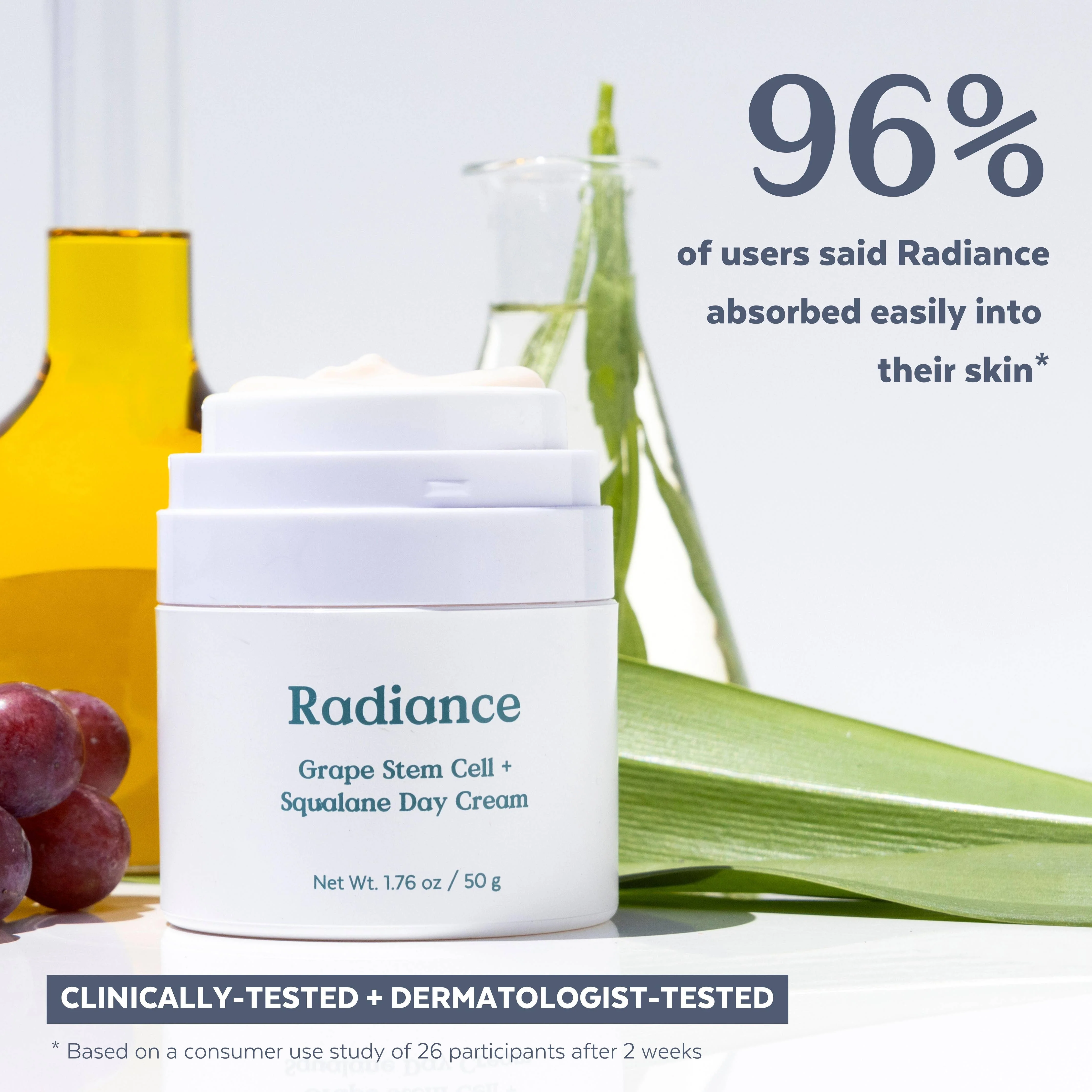 Perfectly formulated for thirsty skin that feels tight and lacks radiance, all in a fast-absorbing and light-weight formula. This cream quenches skin with revolutionary Grape Stem Cells and natural Squalane derived from sugar cane. Radiance enhances your skin’s ability to retain precious moisture, leaving it nourished and radiant. Clinically-tested to be hypoallergenic, dermatologist-tested, and a non-irritant.