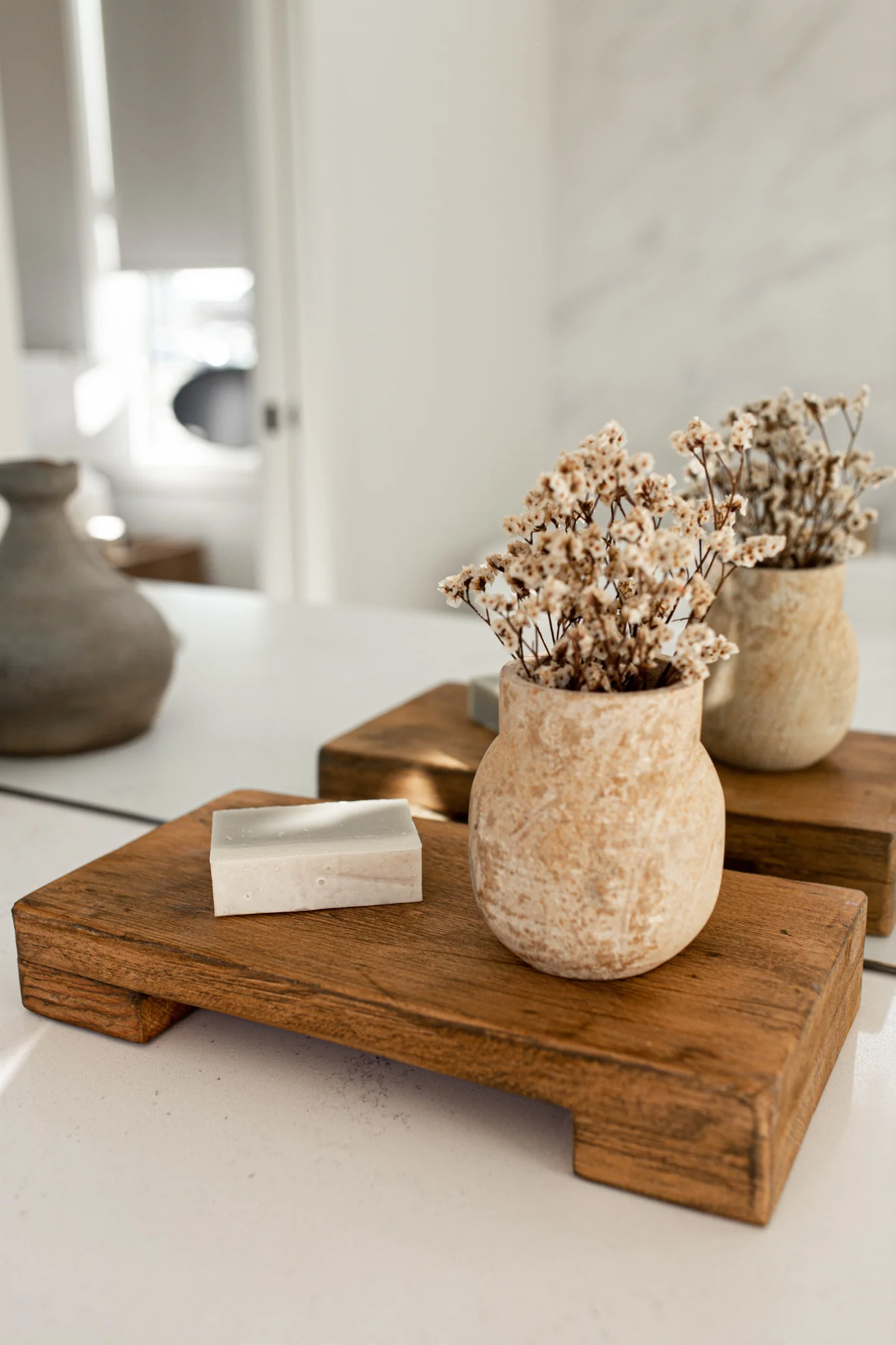 Crafted from vintage elmwood, it's suitable for showcasing olive oils, coking vinegars and salt + pepper in the kitchen; potted plants, and also makes a stunning centrepiece for the bathroom, displaying soap bottles, candles, or other decor accents.
